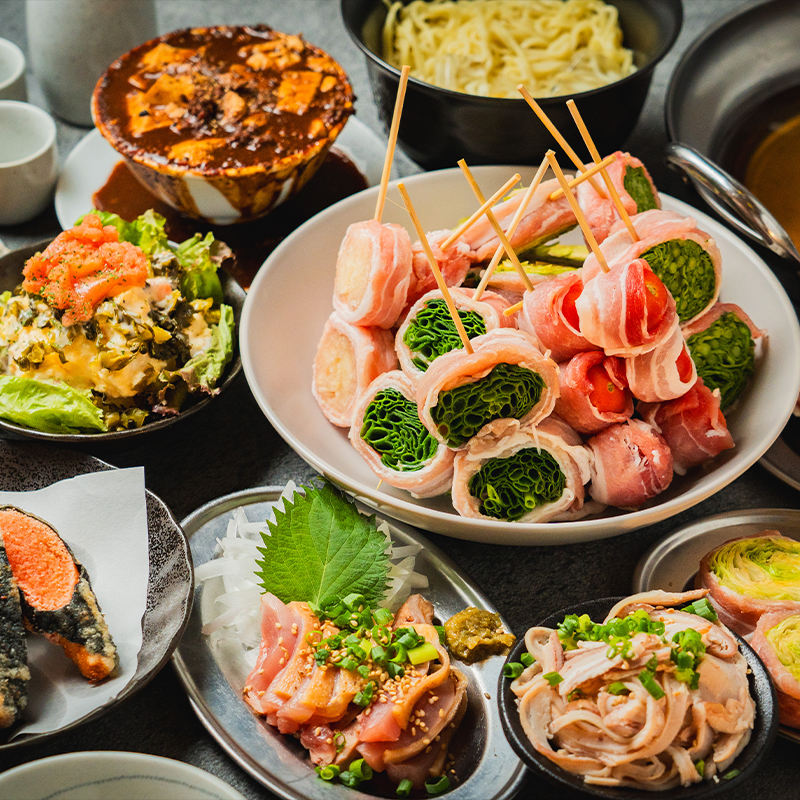 名物野菜巻き串や博多もつ鍋!